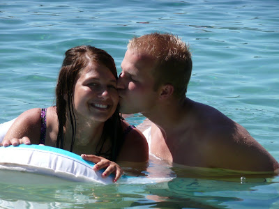 We spent the rest of the week close to the house, enjoying the private beach area. In the garage was a large blow-up island that the boys used in the water. The boulders there are huge! You could go out in the lake skipping from one to the next and then jump off some of them. Rachel and Tyler worked on their tans, and Josh, Christian and I caught up on some homework.
